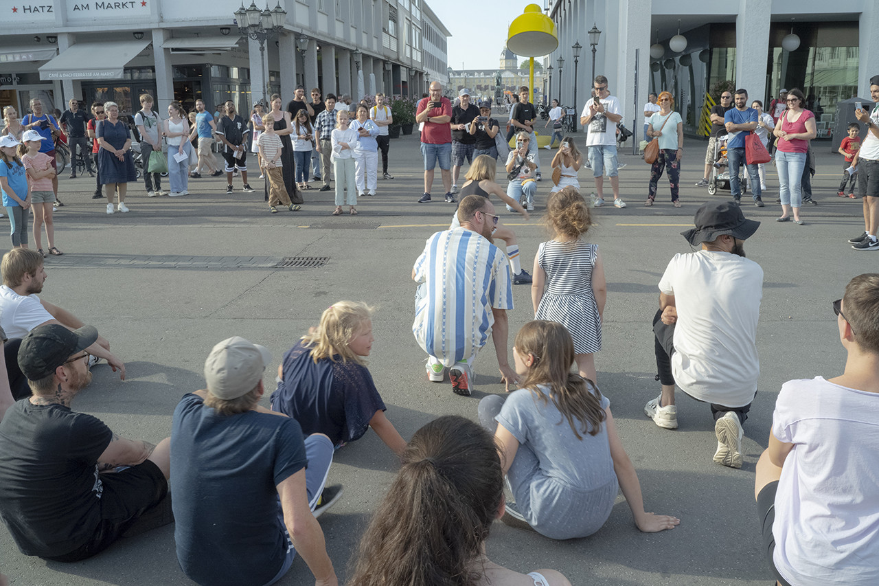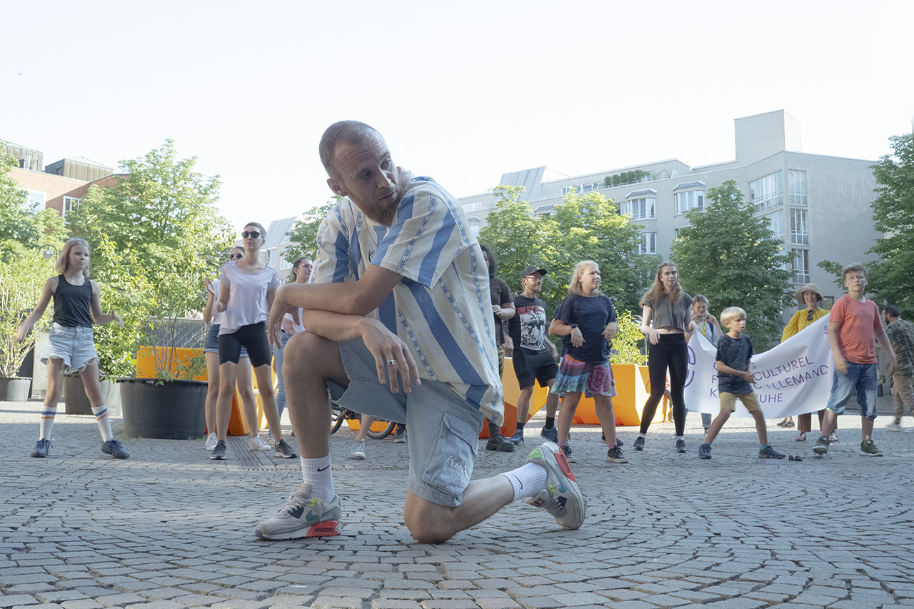 Im Rahmen eines Hip-Hop Workshops mit dem französischen Duo Aurélien Salzard und Kévin Briot (Nancy) erarbeiten tanzbegeisterte Karlsruher eine spezielle Choreographie, die am 21. Juni zur traditionellen Fête de la Musique, auf der bahnfreien Kaiserstrasse aufgeführt wird.
